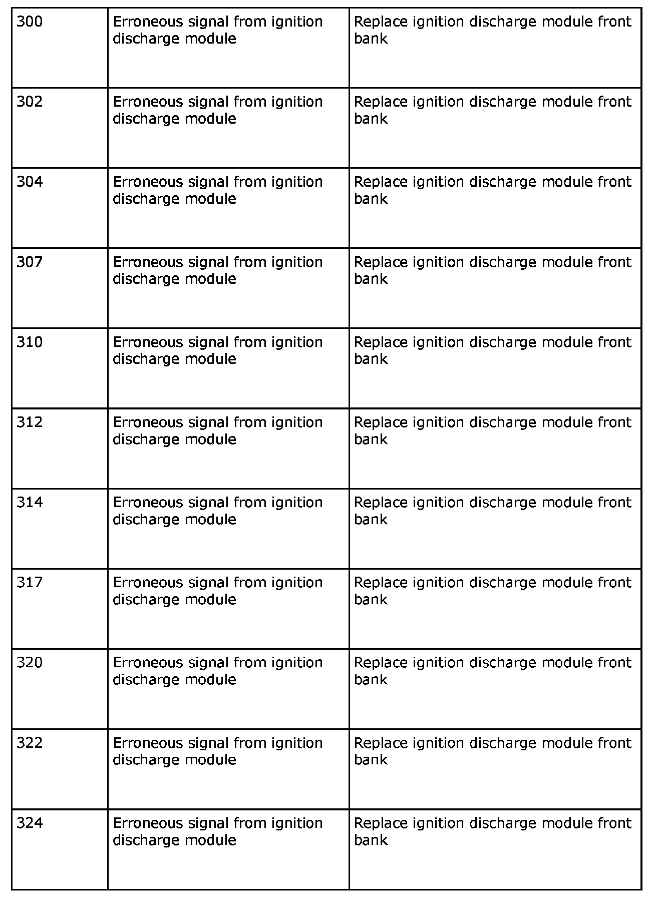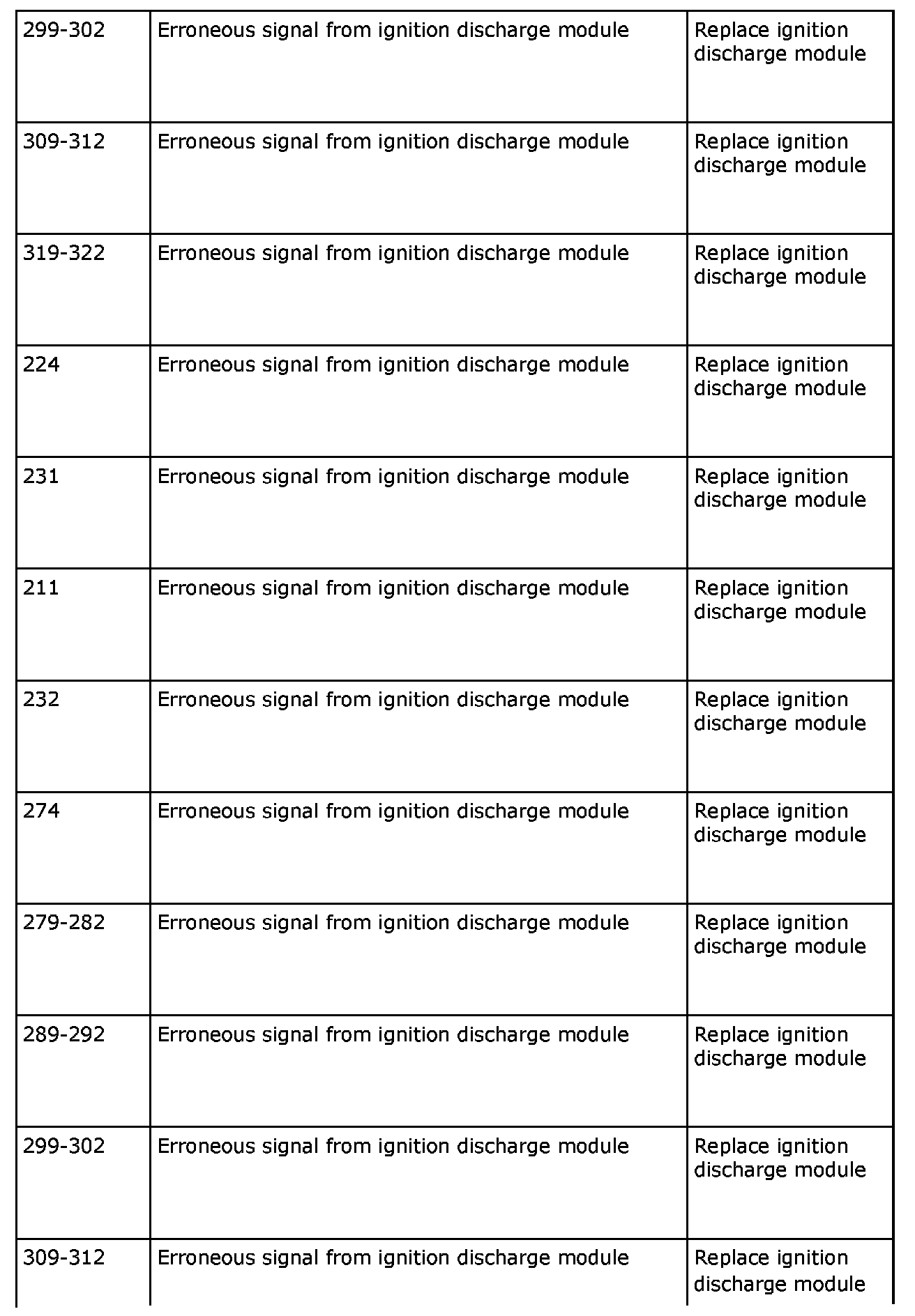 The following OBD diagnostic trouble codes are related to the ignition discharge module:
