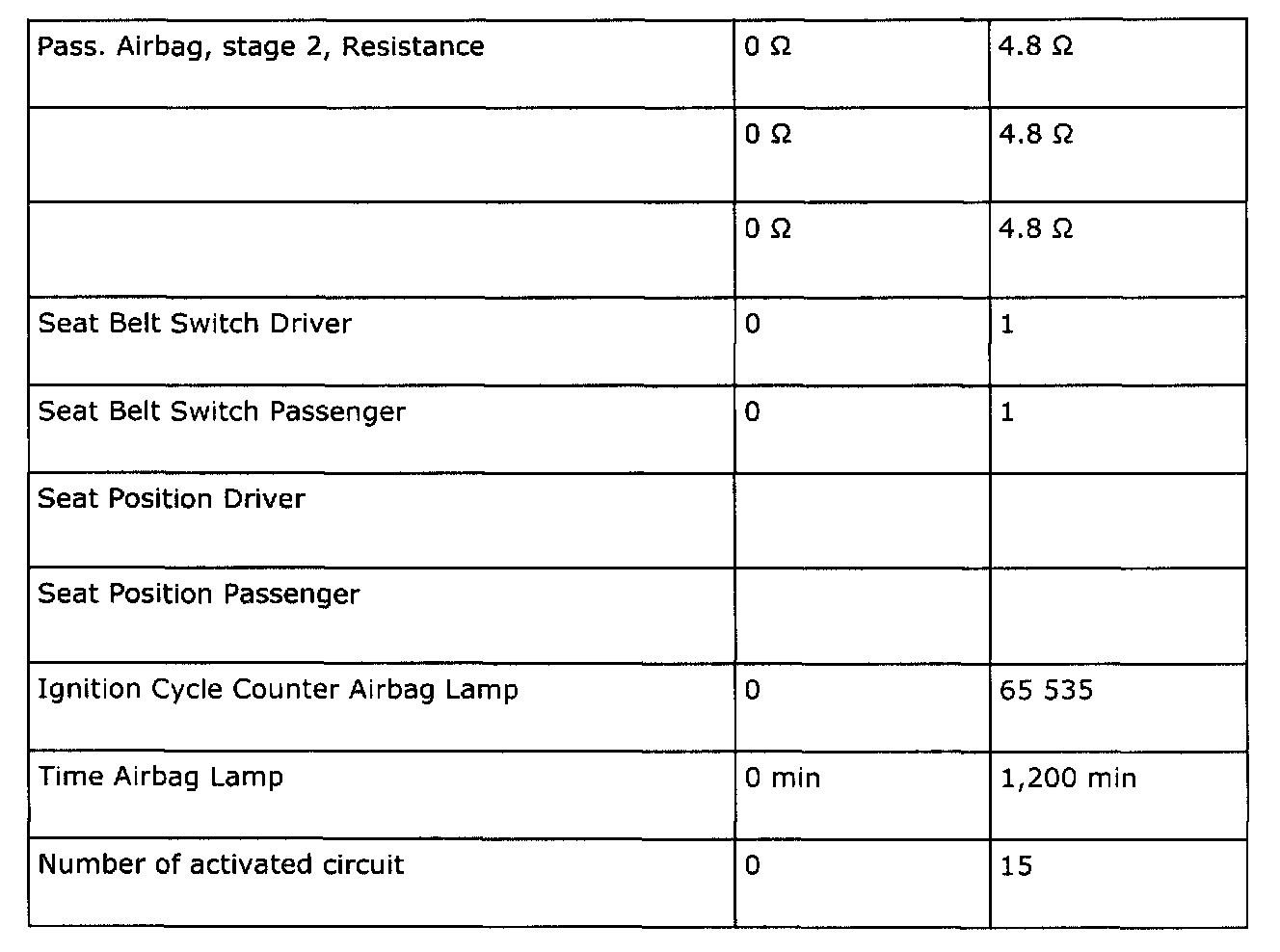 The following table indicates the values for measuring SRS levels. The diagnostic tool should be used for measurement.