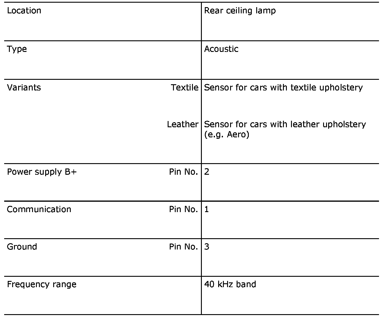 To obtain the correct function and sensitivity of the antitheft alarm, it is important that the correct variant of glass breakage sensor is used.