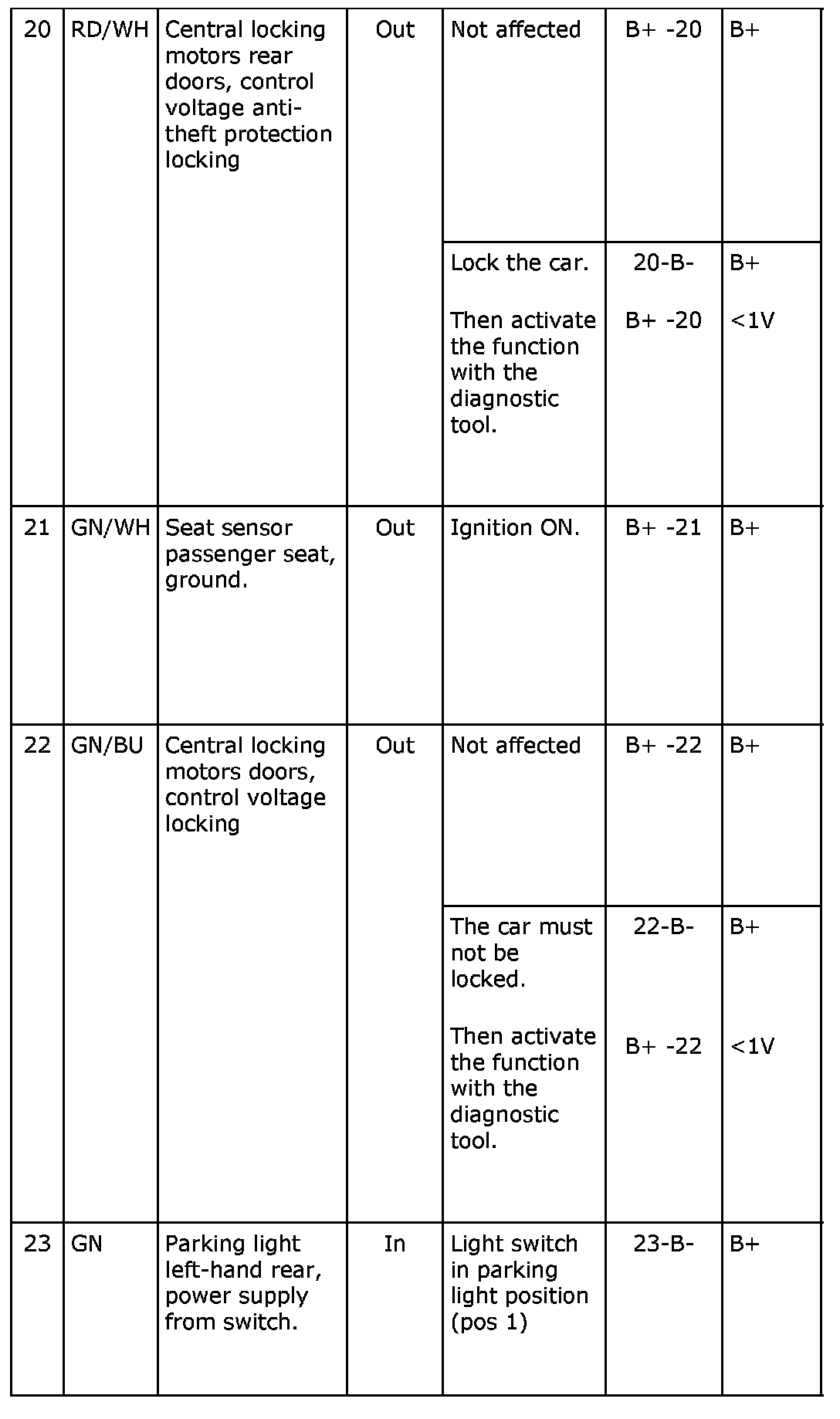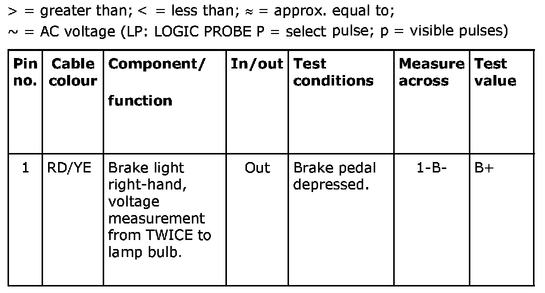 - If a measured value is incorrect, investigate which leads, connectors or components should then be checked, using the wiring diagram.