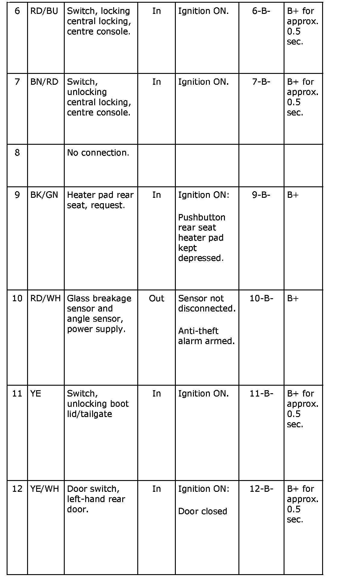 Pin No. 6-12: