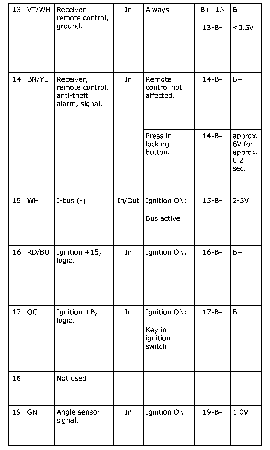 Pin No. 13-19: