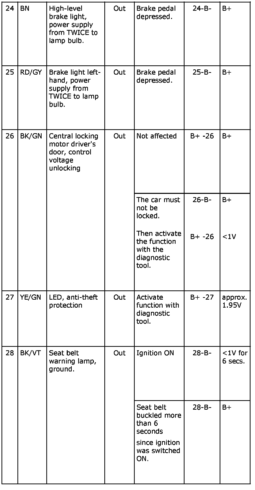 Pin No. 24-28: