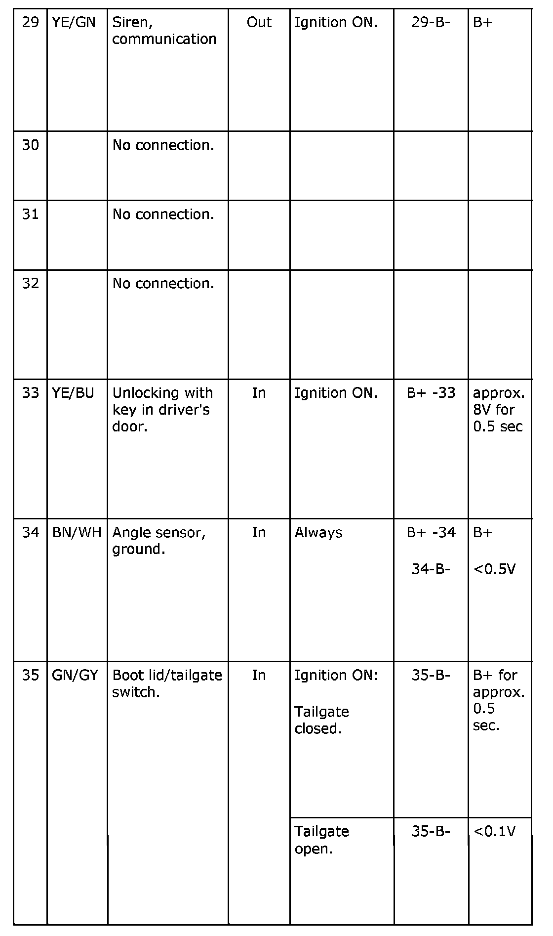 Pin No. 29-35: