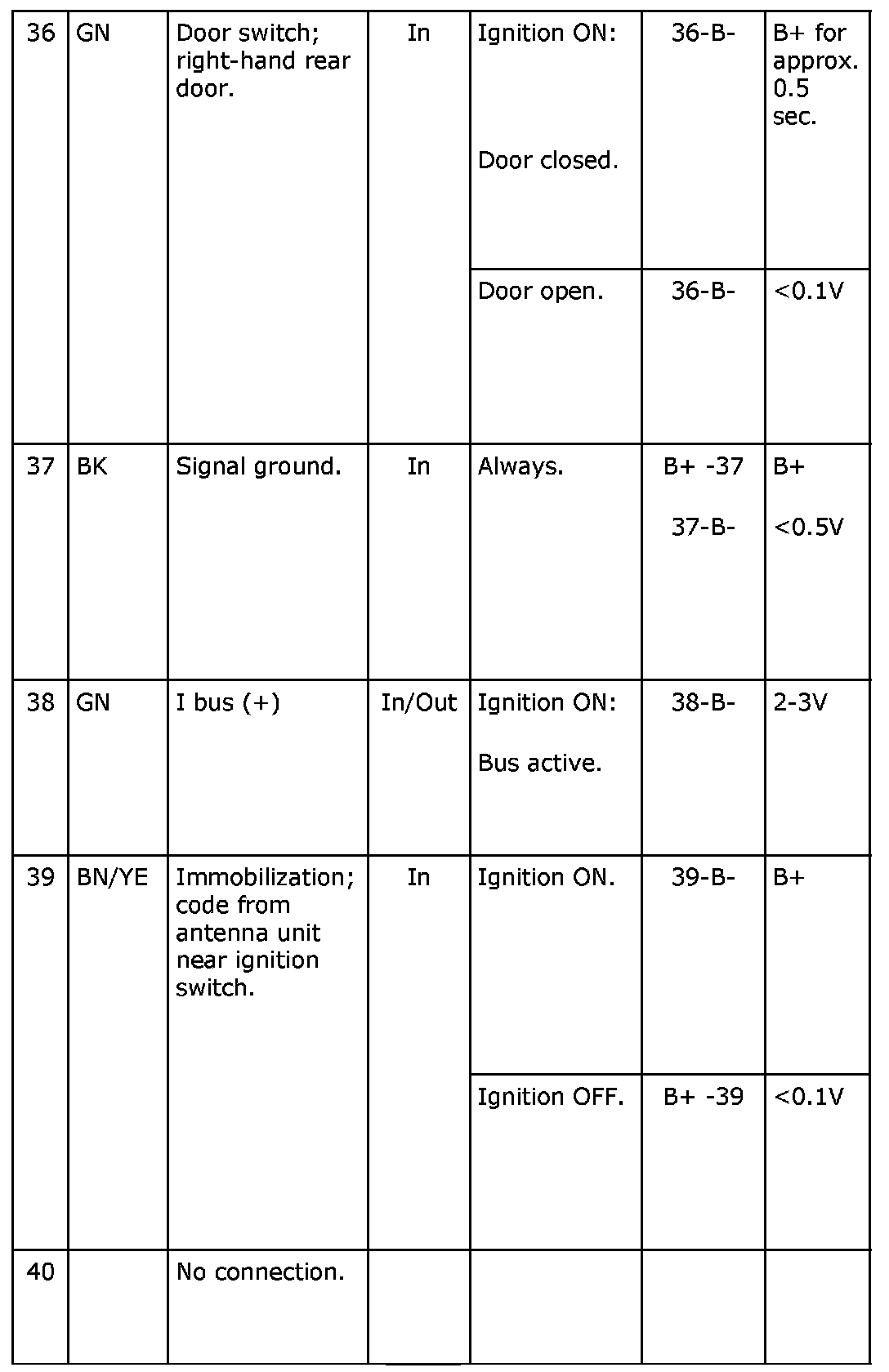 Pin No. 36-40: