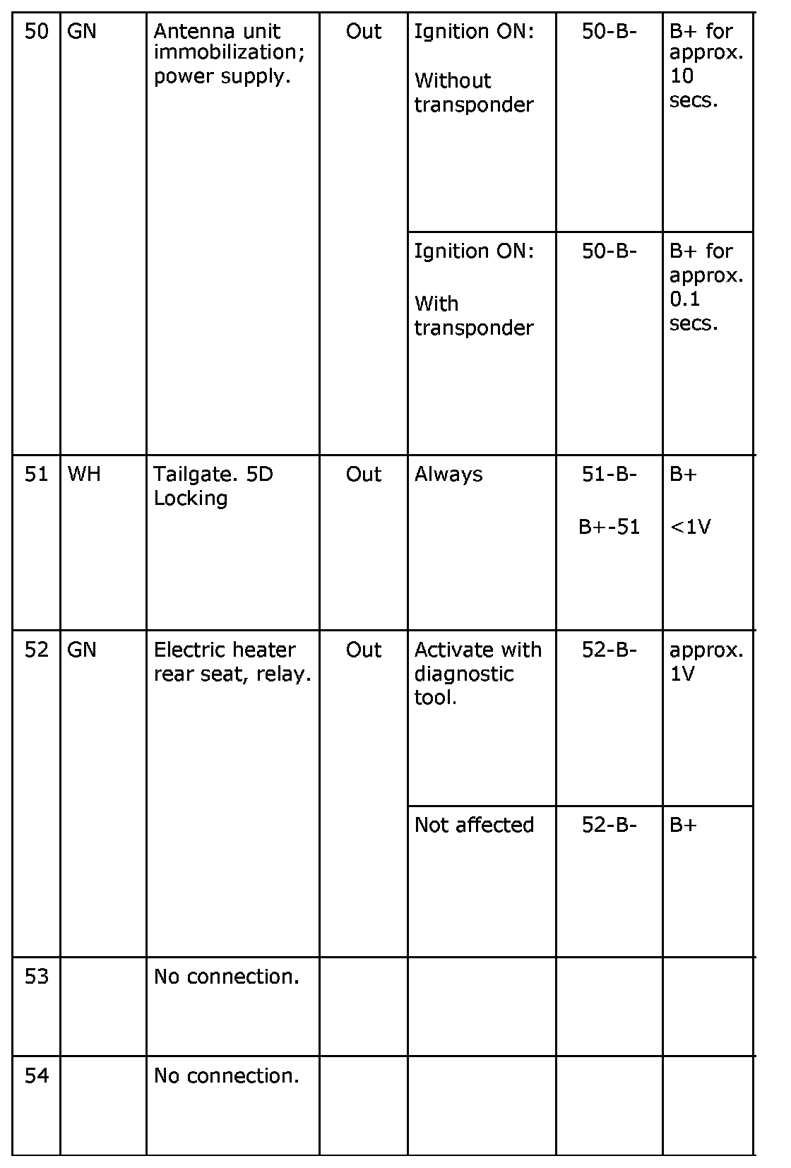 Pin No. 50-54: