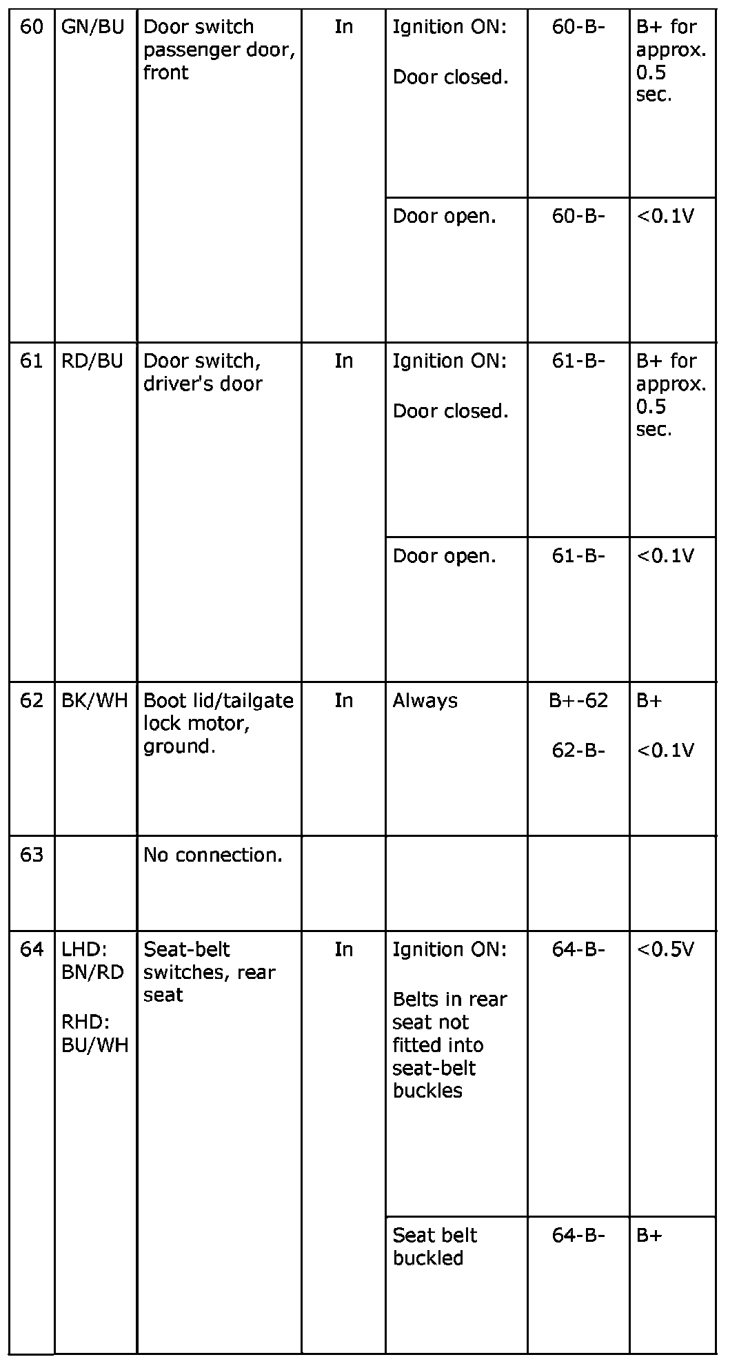 Pin No. 60-64: