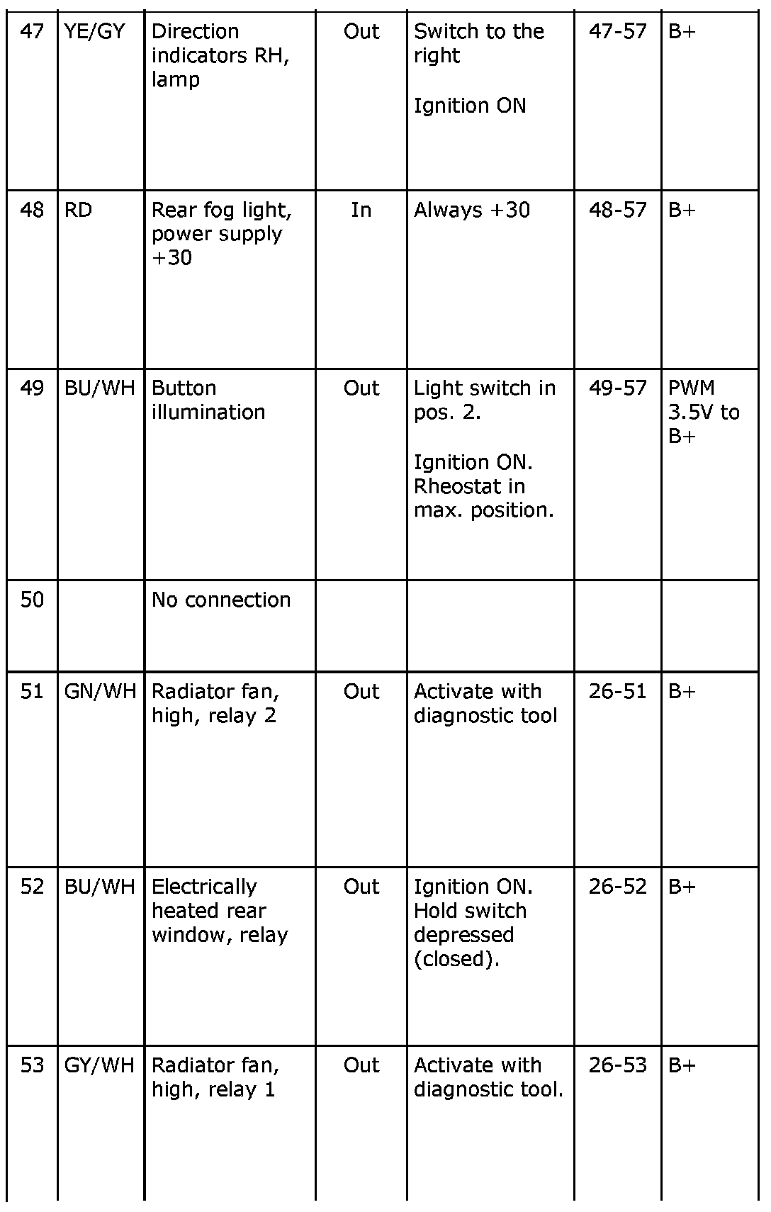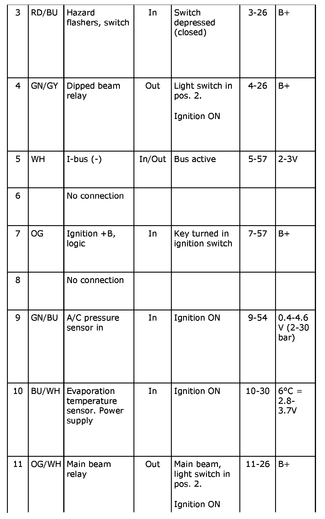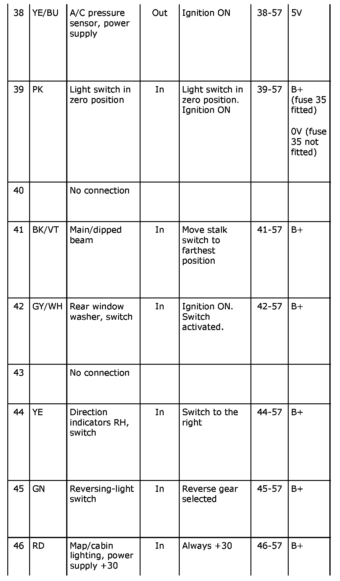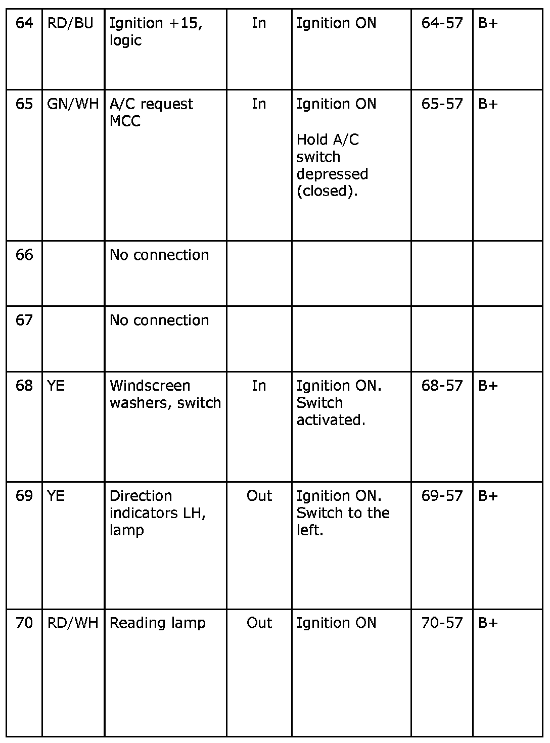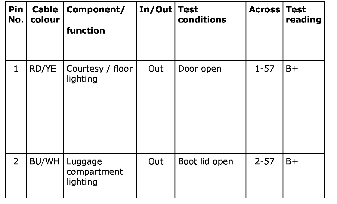 - The specified readings are with the ignition in position ON unless otherwise stated.