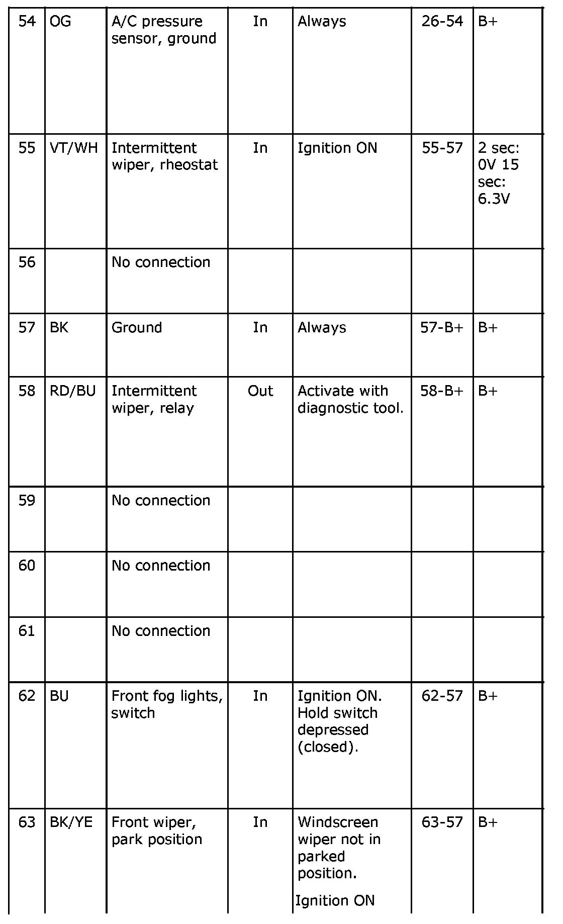 - If any reading is not OK, consult the wiring diagram to trace the leads, connectors or components which should be checked more thoroughly.