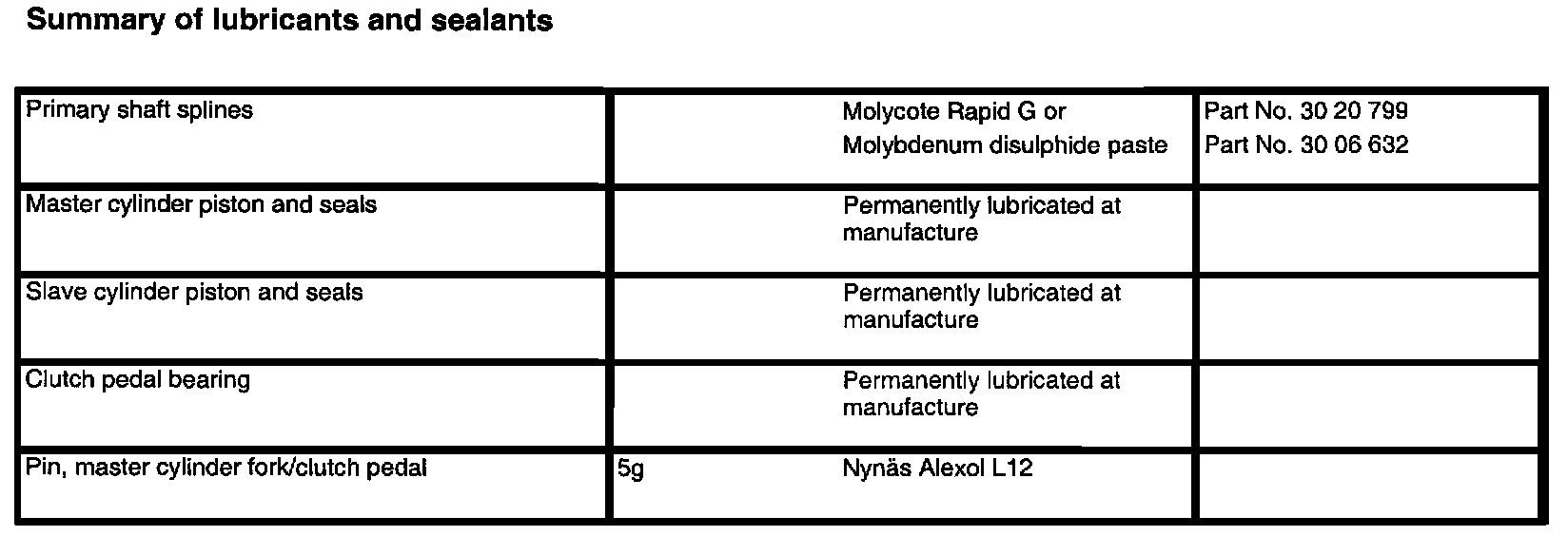 FM 55/57 5-spd M/T, Clutch Lubricant/Sealants:
