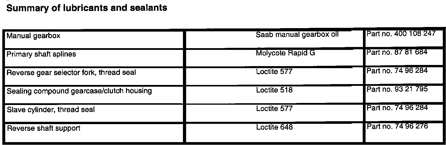 FM 55/57 5-spd M/T Gearbox Lubricant/Sealants: