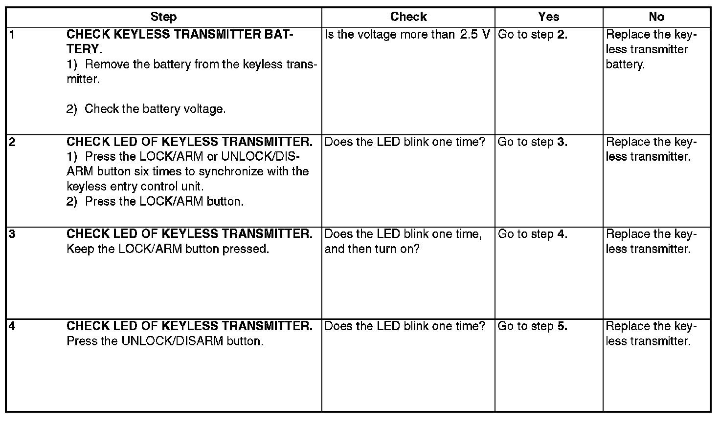 Check Keyless Transmitter Battery and Function