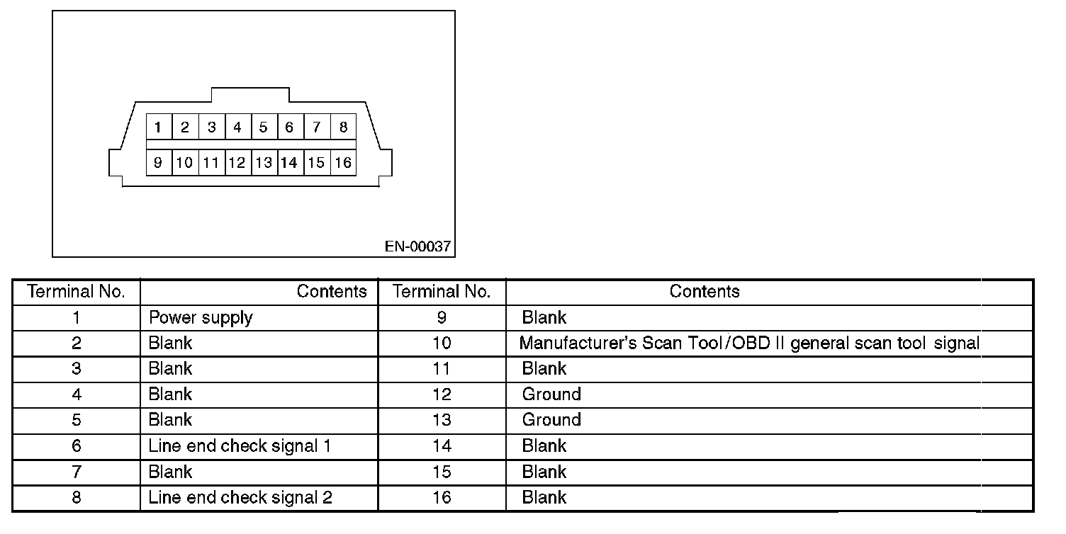 Data Link ConnectorNOTE: This connector is used both for the OBD II general scan tools and Manufacturer's scan tool.