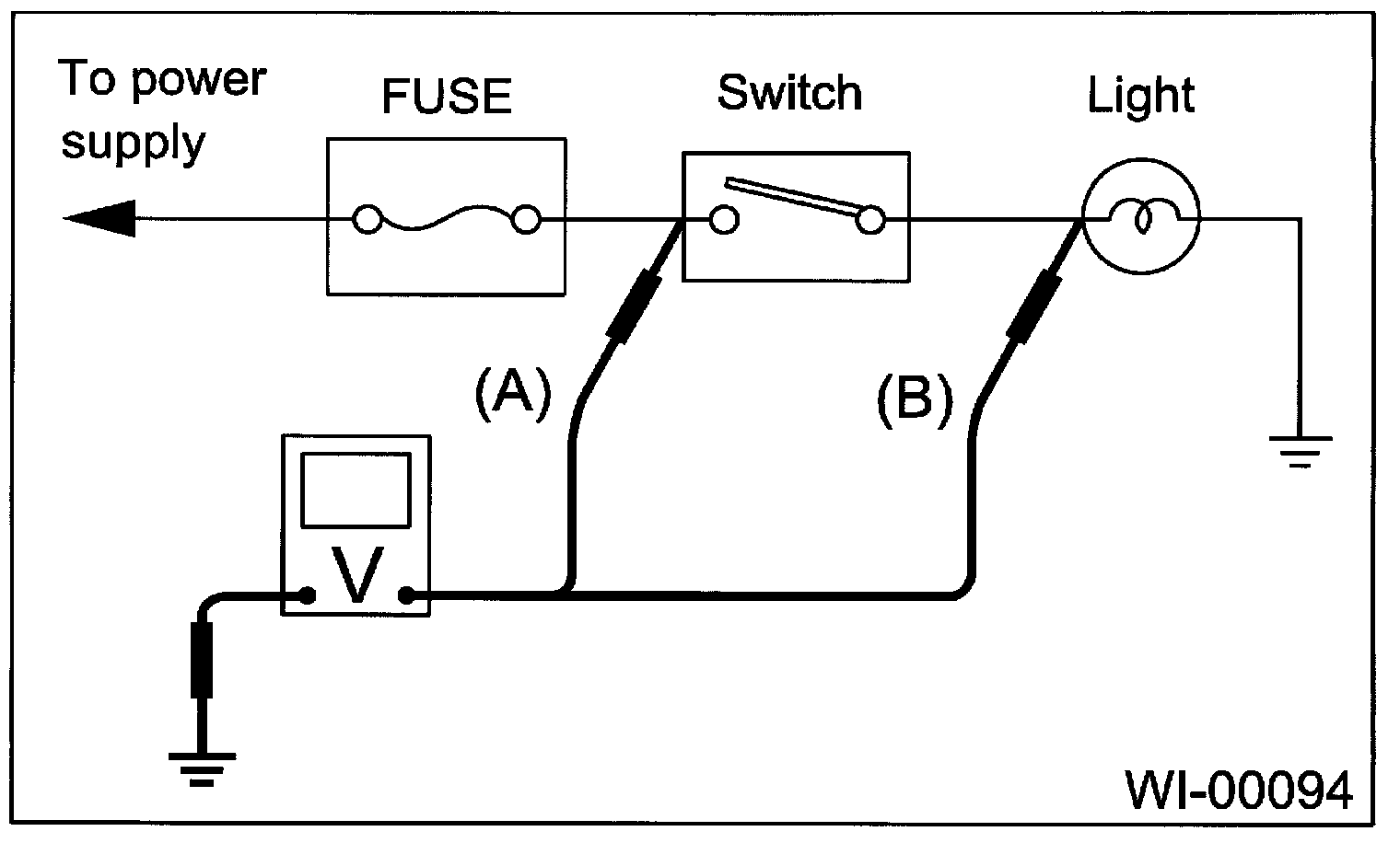 Contact the positive lead of the voltmeter on connector (A). The voltmeter will indicate a voltage.