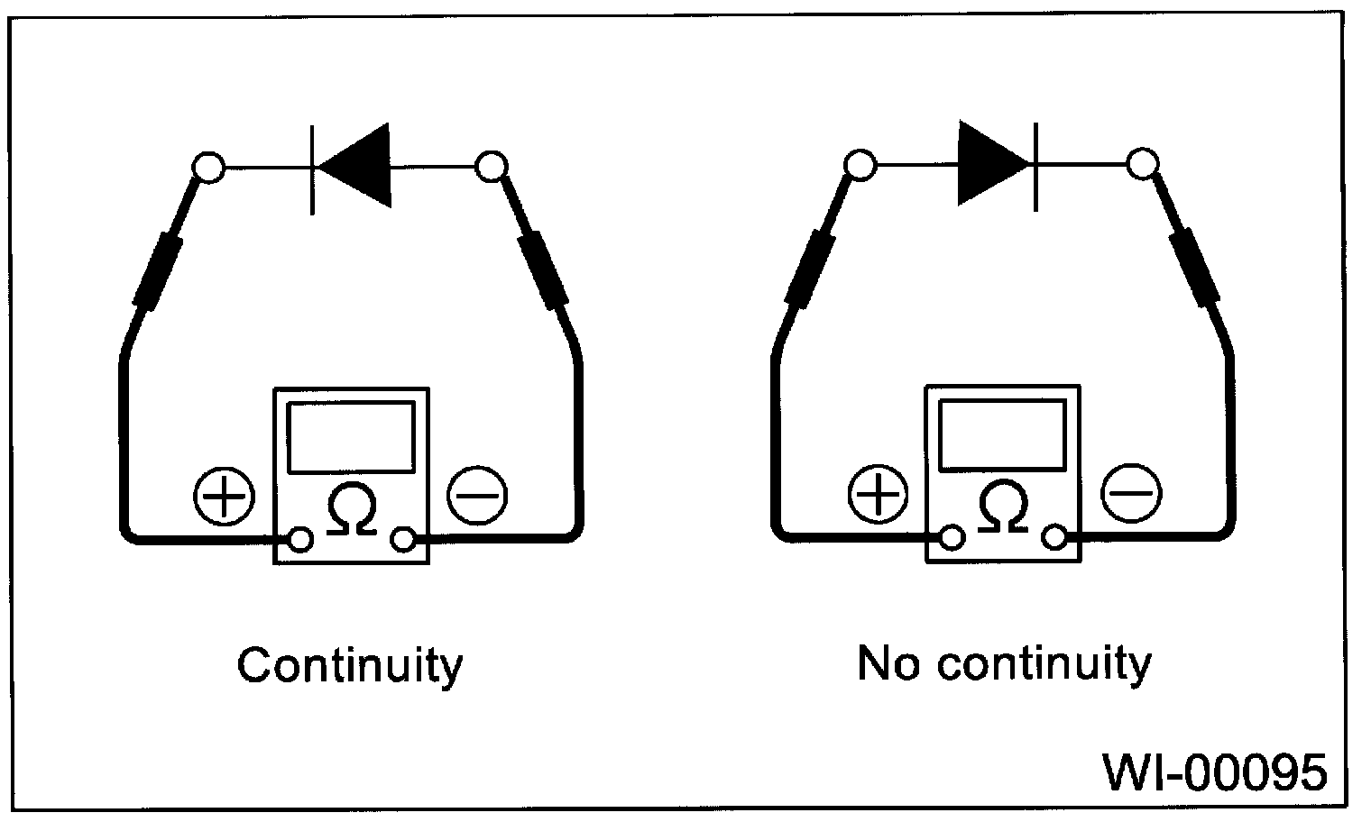 When contacting the two leads in reverse, there should be no continuity.