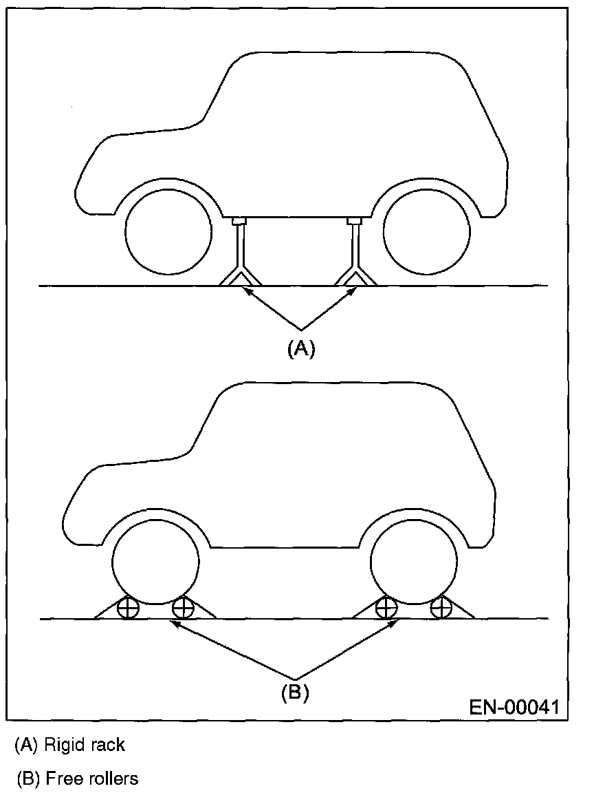 Raise the vehicle using a garage jack and place on rigid racks or drive the vehicle onto free rollers.