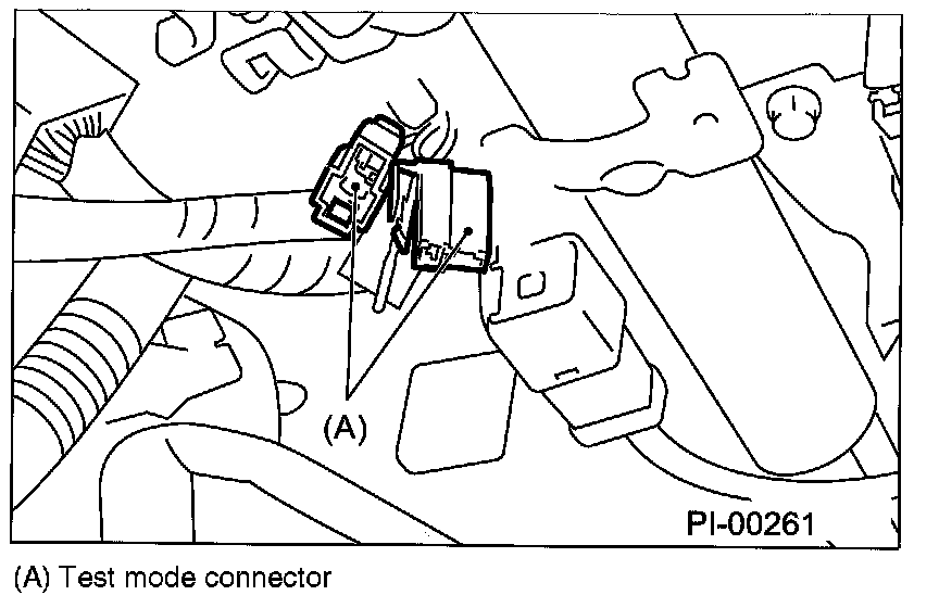Connect the test mode connector (A) at the lower side of instrument panel (on the driver's side).
