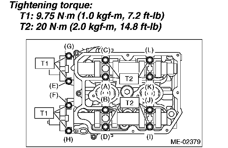 T2: 20 Nm (2.0 kgf-m, 14.8 ft. lbs.)