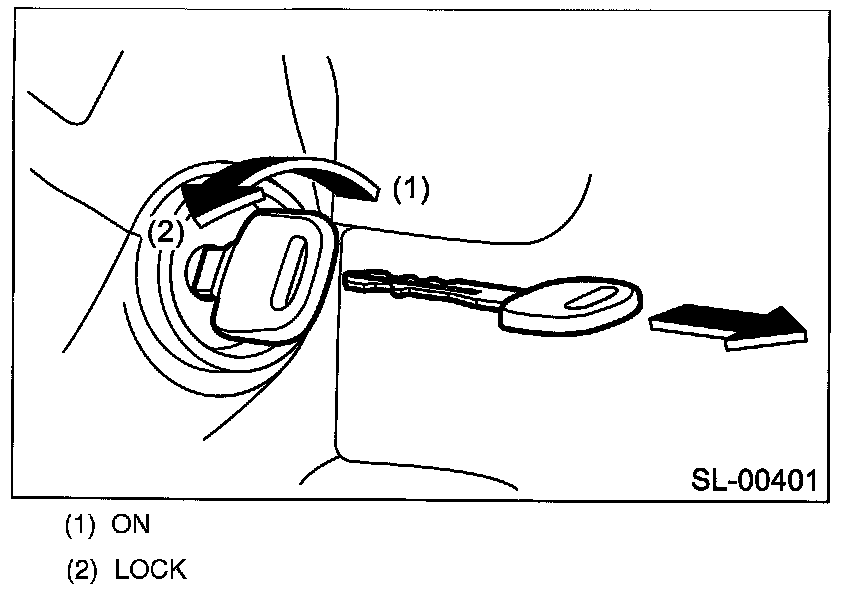 Turn the ignition switch from ON to LOCK, and remove the key from ignition switch.