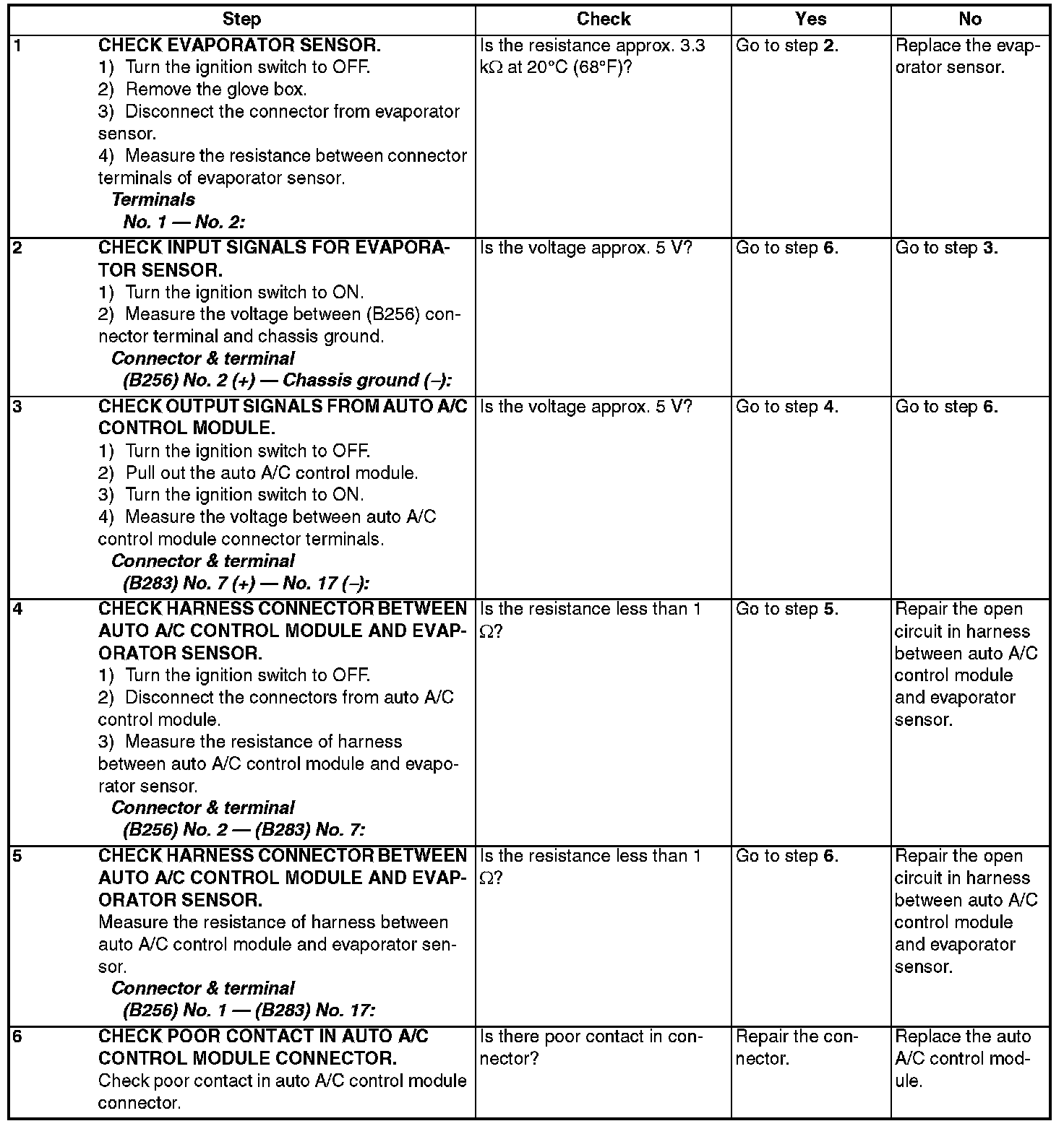Evaporator Temperature Sensor / Switch: Testing and Inspection