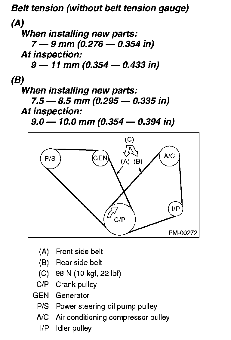 3. Check the V-belt tension and adjust it if necessary by changing the generator installing position or idler pulley installing position.