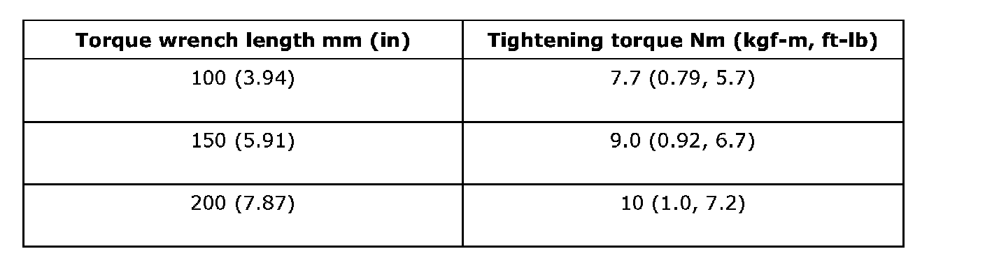 T1: 14 Nm (1.4 (kgf-m, 10.1 ft. lbs.)