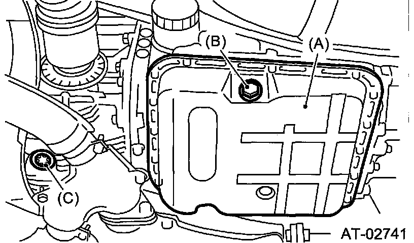 Note: When replacing ATF, check the inside condition of the transmission body by inspecting the drained ATF.