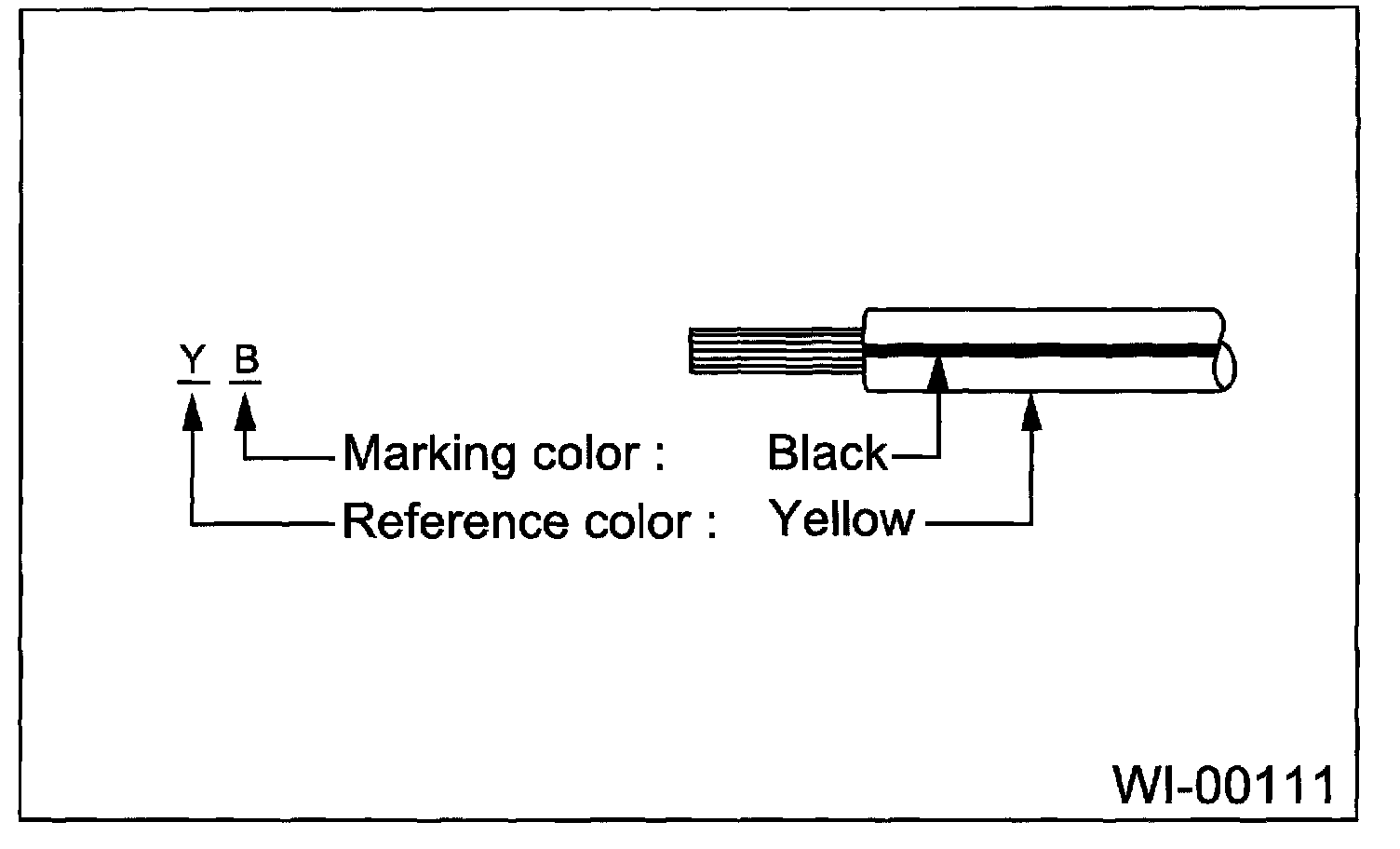 - The wire color code, which consists of two letters (or three letters including Br or Lg), indicates the standard color (base color of the wire covering) by its first letter and stripe marking by its second letter.