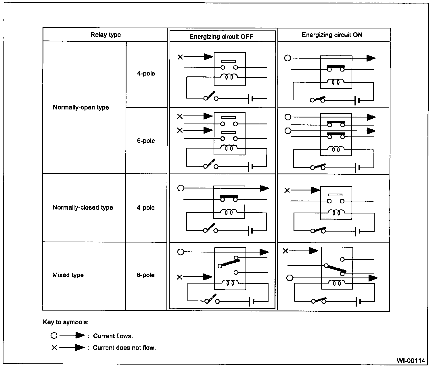 The normally-closed relay has one or more contacts. The wiring diagram shows the relay mode when energizing circuit is OFF.