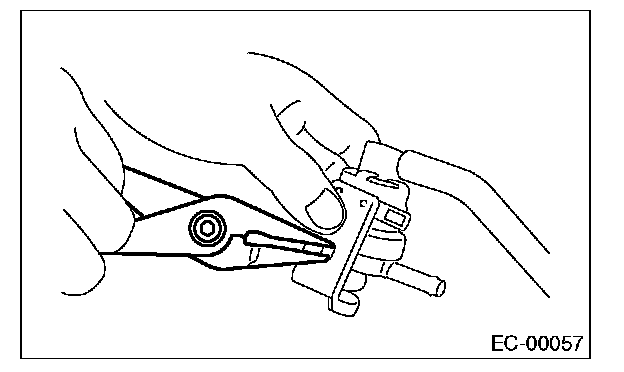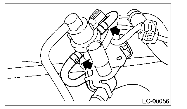 7. Disconnect the two evaporation hoses from pressure control solenoid valve.