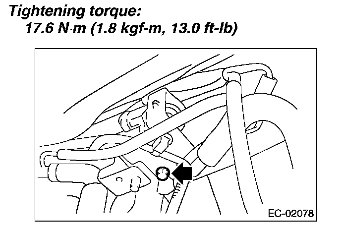 5. Remove the bolt which installs the pressure control solenoid valve holding bracket on body.
