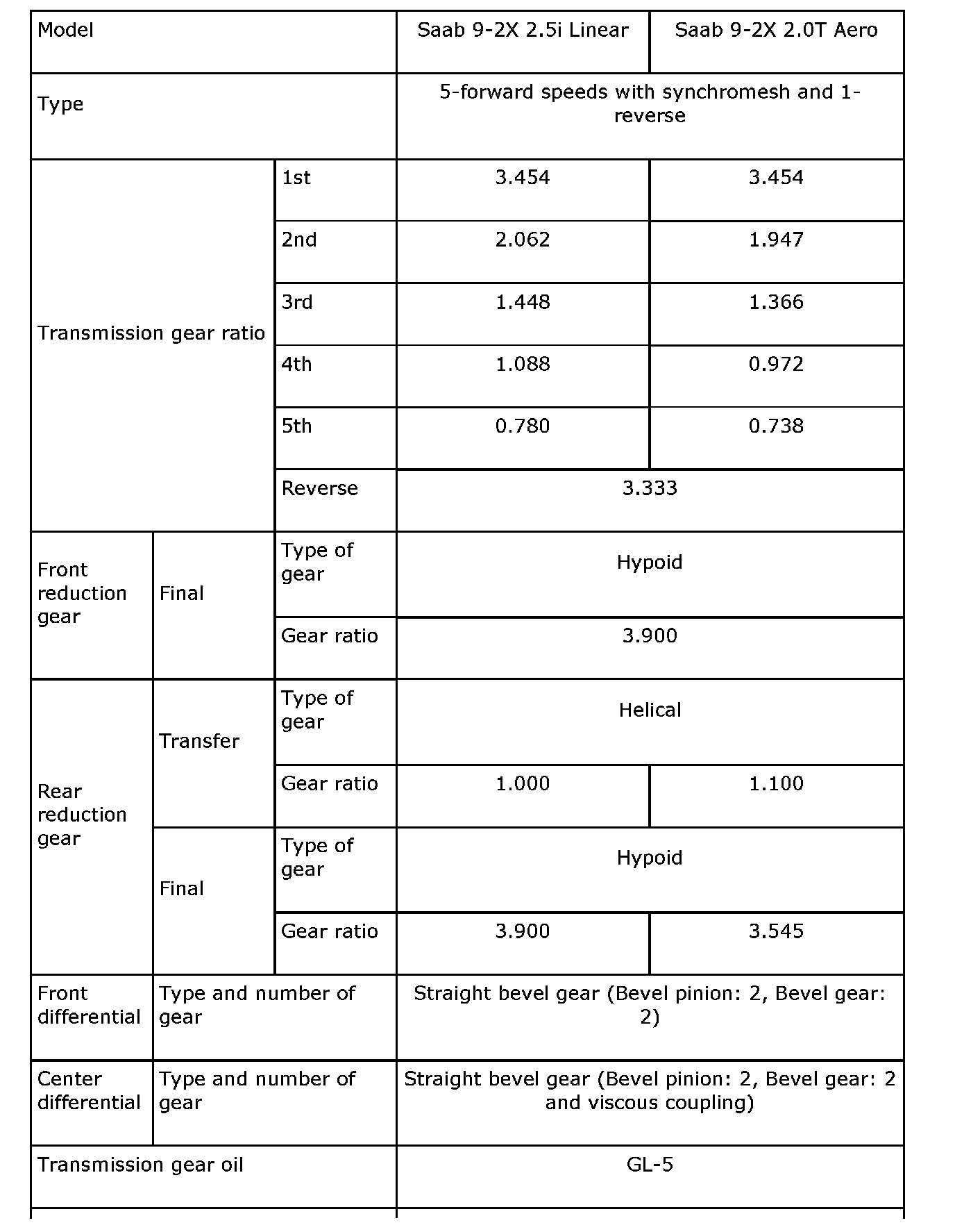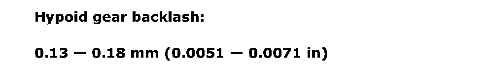 Hypoid gear backlash 0.13 - 0.18 mm (0.0051 - 0.0071 inch)