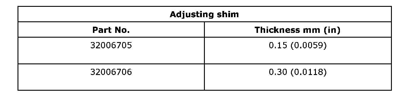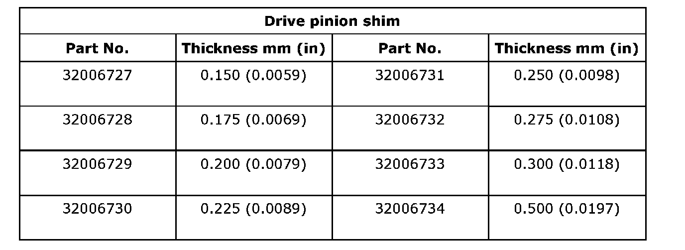 Bevel gear to pinion backlash 0.13 - 0.18 mm (0.0051 - 0.0071 inch)