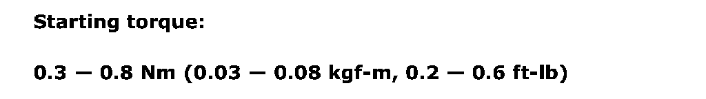 Starting torque 0.3 - 0.8 Nm (0.03 - 0.08 kgf-m, 0.2 - 0.6 ft. lbs.)