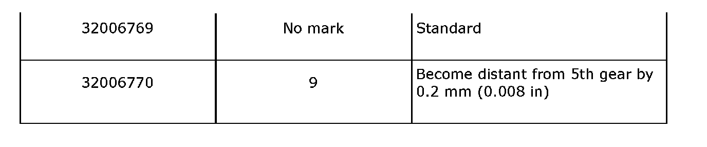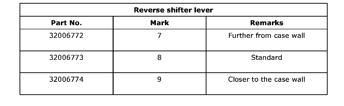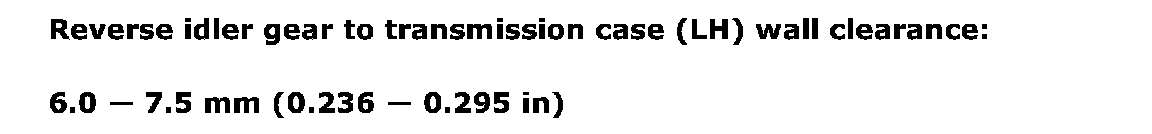 Reverse idler gear to transmission case (LH) wall clearance 6.0 - 7.5 mm (0.236 - 0.295 inch)