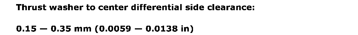 Thrust washer to center differential side clearance 0.15 - 0.35 mm (0.0059 - 0.0138 inch)