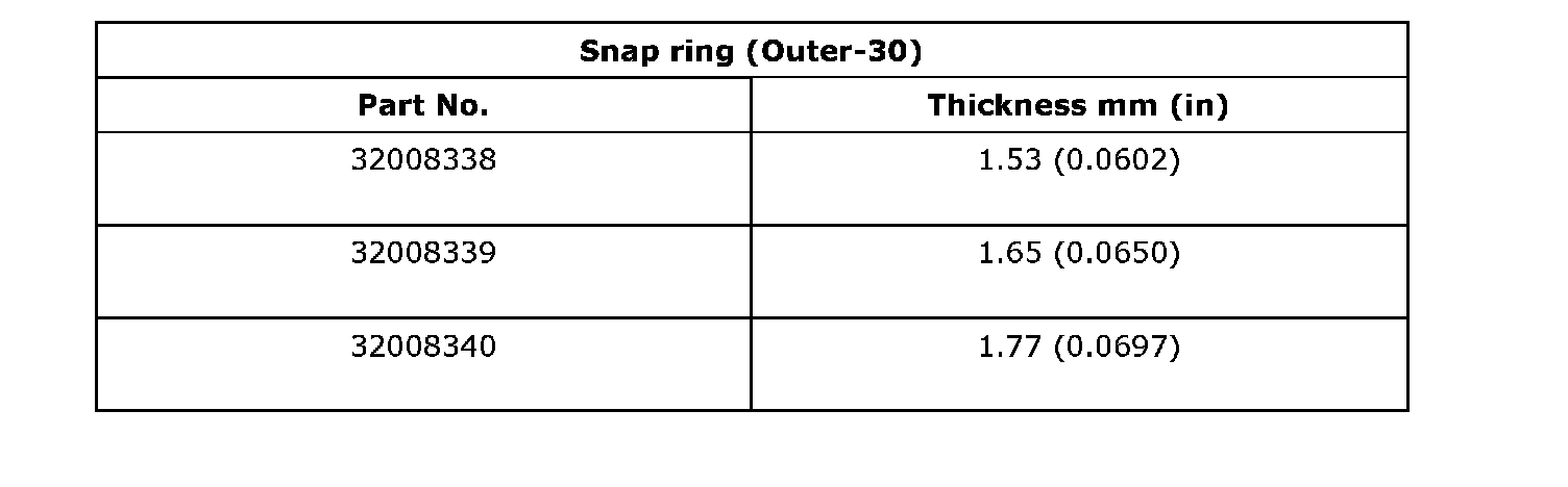 Snap ring (Outer-30) to ball bearing clearance 0.01 - 0.15 mm (0.0004 - 0.0059 inch)