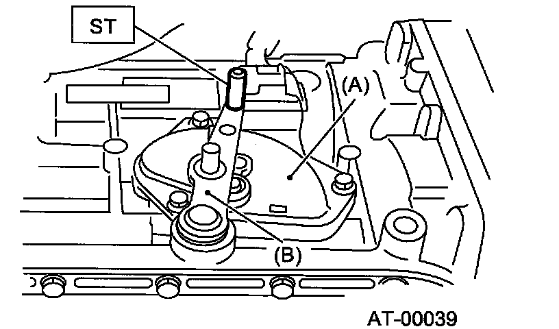 Insert the ST as vertical as possible into the holes in inhibitor switch lever and switch body.