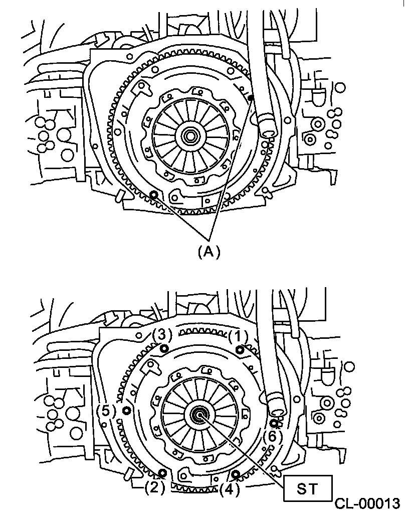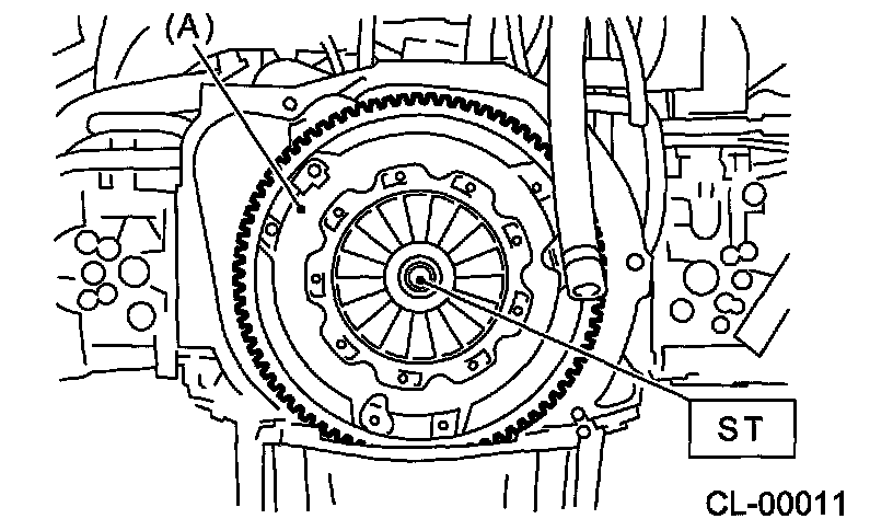 ^ Be sure to put alignment marks on the flywheel and clutch cover before removing clutch cover.