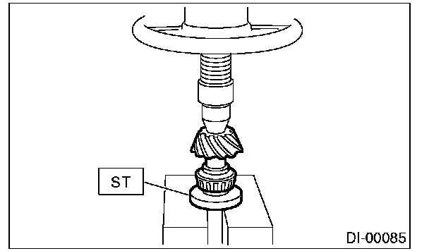 3. Install the selected pinion height adjusting washer on drive pinion, and press the rear bearing cone into position with ST.