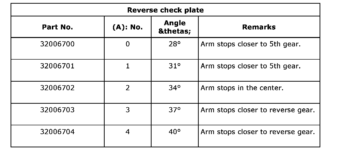 Shift the shifter arm to "5th" and then to reverse to see if reverse check mechanism operates properly.