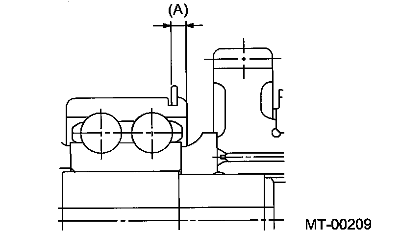 Note: Before measuring, tap the end of main shaft with a plastic hammer lightly in order to make the clearance zero between the main case surface and the moving flange of bearing.