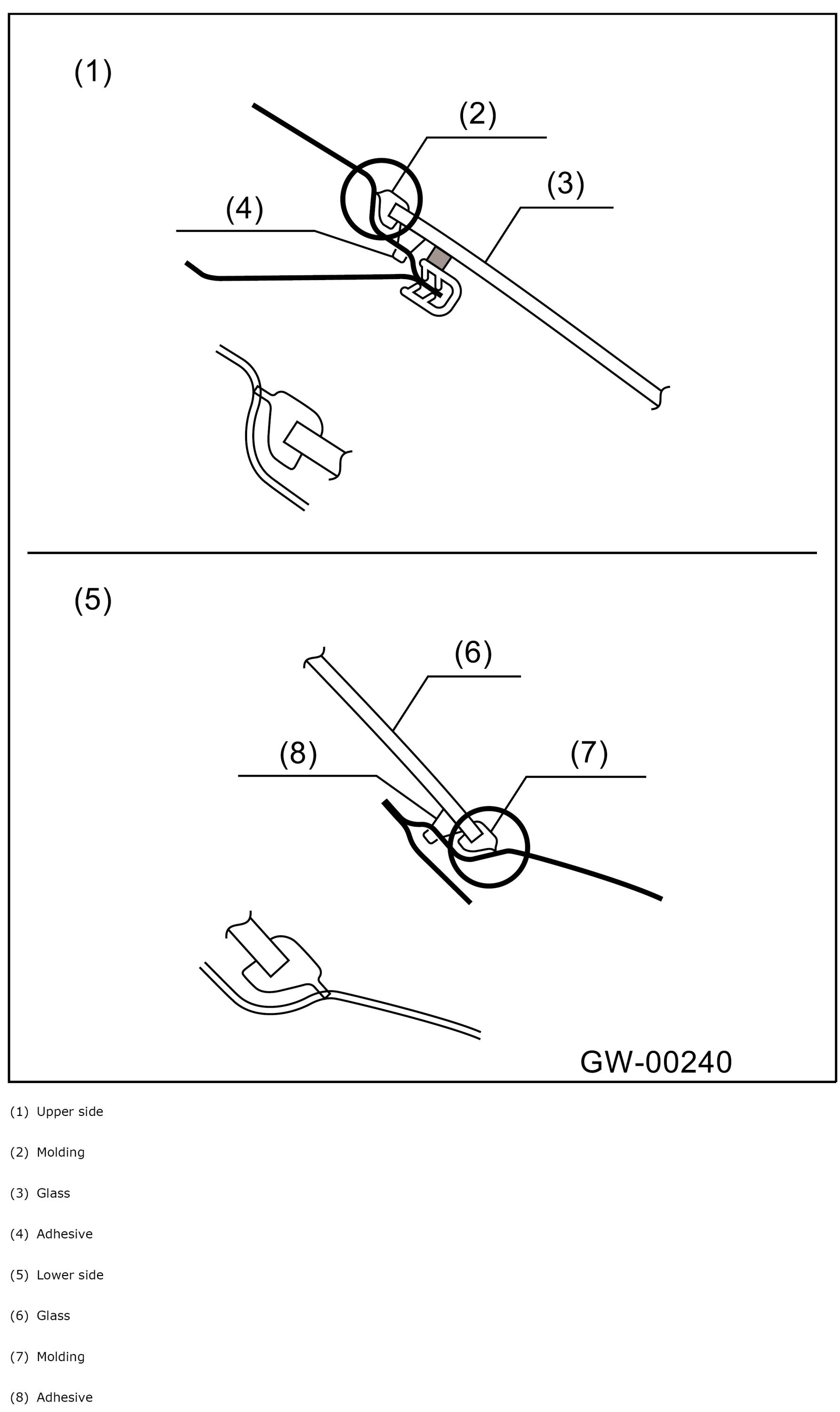 - For minimum drying time and time the vehicle must be left standing before driving after bonding, follow the instructions from adhesive manufacturer.