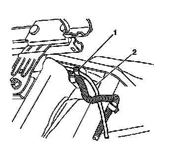 3. Install the lumbar cable (2) in the cable clip (1) located on the lower seat back.