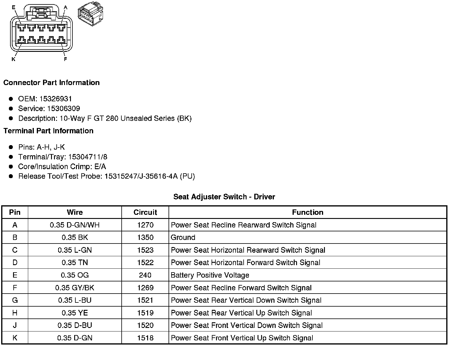 Seat Adjuster Switch - Driver
