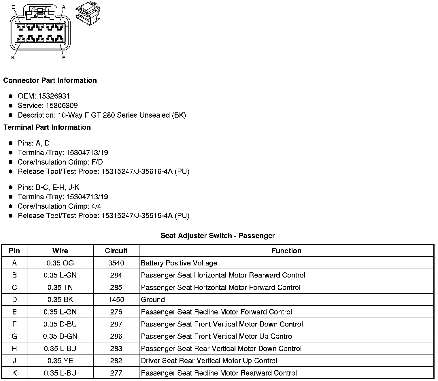Seat Adjuster Switch - Passenger