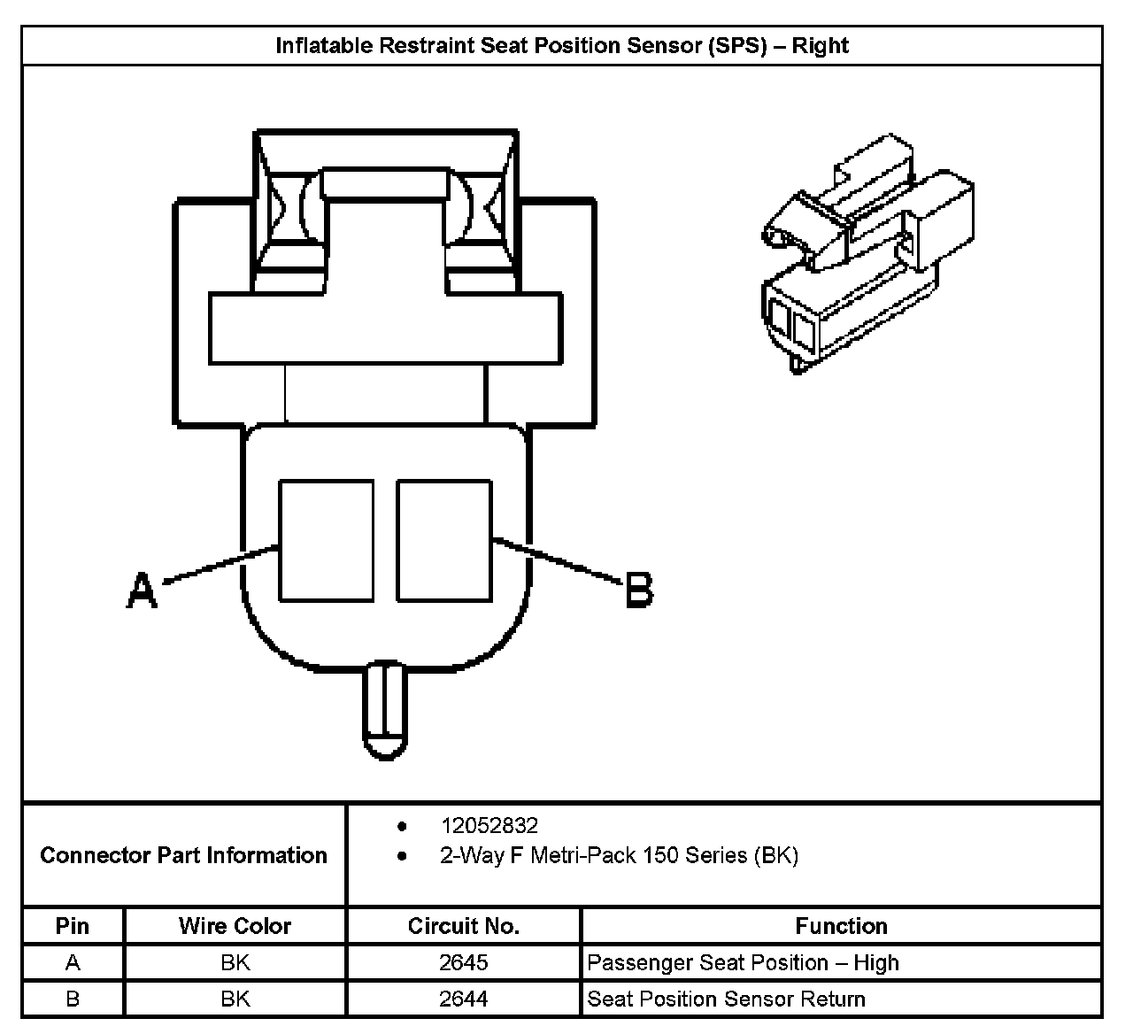 Inflatable Restraint Seat Position Sensor (SPS) - Right: