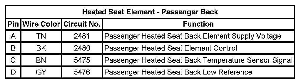 Heated Seat Element - Passenger Back