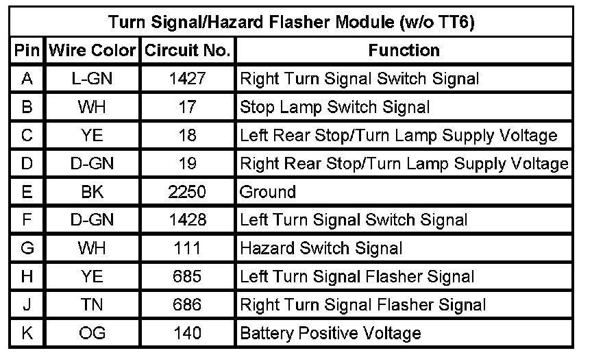 Turn Signal/Hazard Flasher Module (w/o TT6)