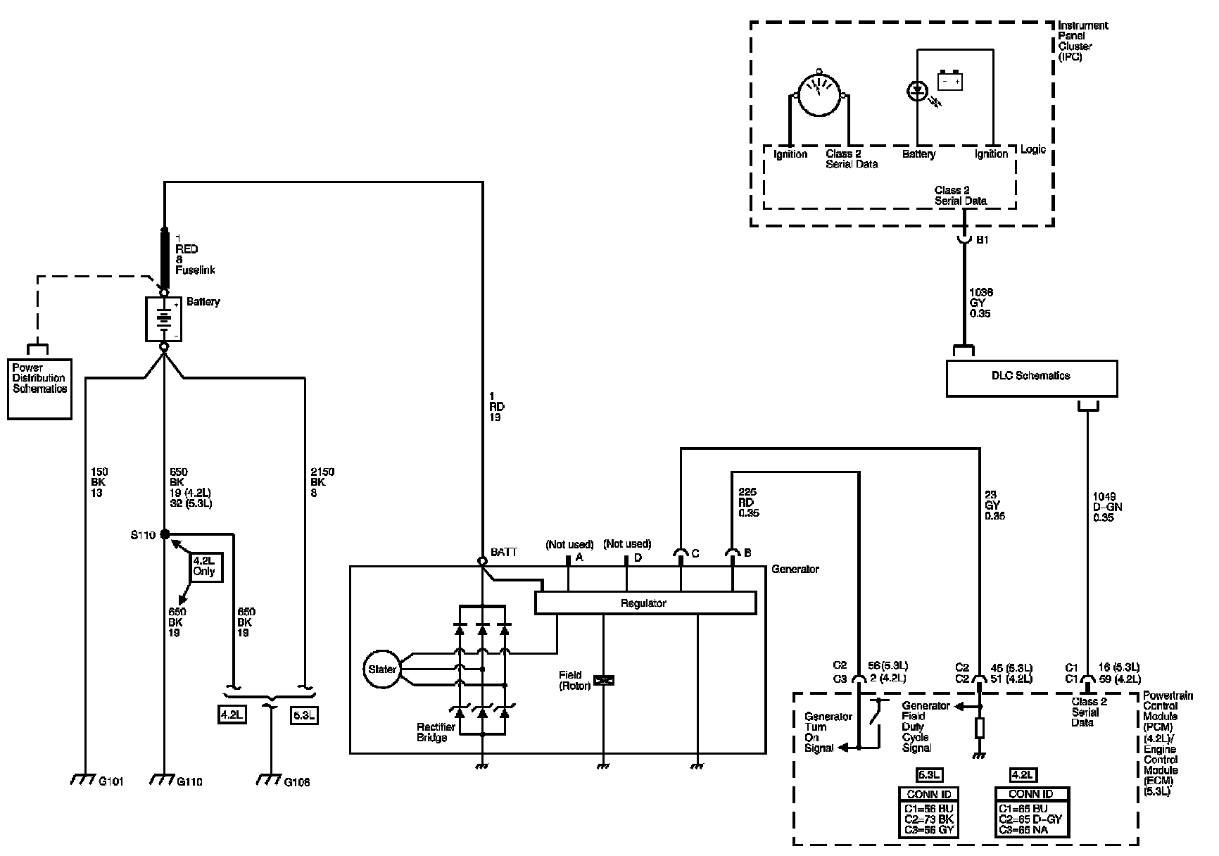 The locations for the Connectors, Grounds, Splices, and Grommets shown within these diagrams can be found via their numbers at Vehicle Locations.